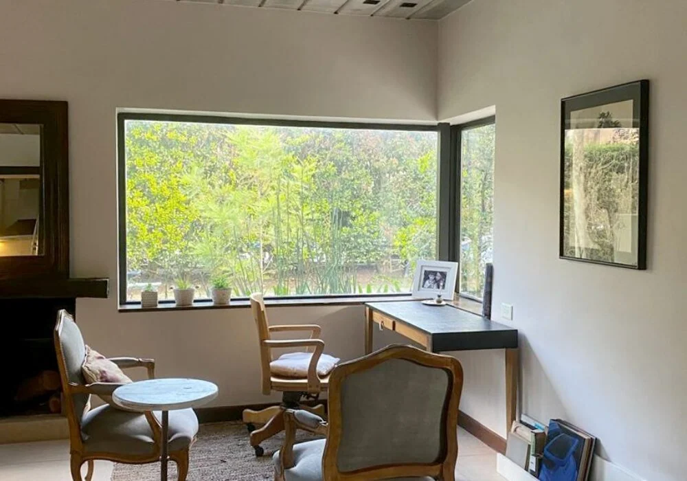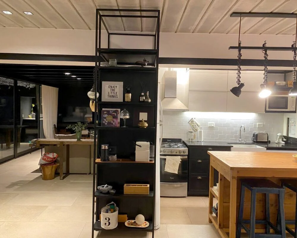 La nueva distribución optimizó la luz natural mediante amplias aberturas que conectan interior y exterior. El living se abre hacia la galería, mientras que la cocina, equipada con una isla central, fluye hacia el comedor y un área de escritorio, generando espacios integrados y versátiles. Los dormitorios cuentan con grandes ventanales que incorporan el verde del paisaje, logrando una atmósfera acogedora y atemporal.