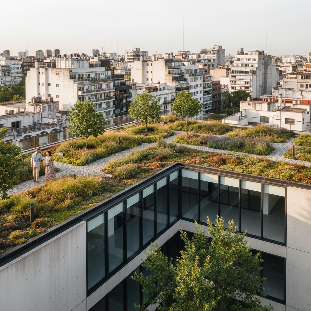 La premisa es clara: ante la escasez de suelo en las metrópolis, el área de las cubiertas se presenta como una superficie subutilizada con un potencial considerable para mitigar diversos problemas urbanos. Estudios de la Comisión Europea y organizaciones como el World Green Infrastructure Network (WGIC) proyectan que hasta el 20-30% de la superficie horizontal de las ciudades podría ser susceptible de ser ajardinada. La implementación de estos sistemas, que varían desde cubiertas extensivas (de menor profundidad de sustrato y bajo mantenimiento, ideales para edificios existentes) hasta las intensivas (con mayor capacidad portante y aptas para el desarrollo de paisajismos complejos y espacios de uso público), aborda directamente fenómenos críticos como el efecto de isla de calor urbano. Un informe del US Environmental Protection Agency (EPA) señala que los techos verdes pueden reducir la temperatura de la superficie de la cubierta en hasta 20-45°C y la temperatura ambiente del aire circundante en 1-2°C, lo que se traduce en una significativa disminución de la demanda energética para climatización, particularmente en regiones de clima cálido y templado. Esta capacidad termorreguladora no solo optimiza el rendimiento energético de los edificios, sino que contribuye a la calidad del aire al filtrar partículas contaminantes y, fundamentalmente, gestiona eficientemente el agua de lluvia, reduciendo la escorrentía superficial y la carga sobre los sistemas de drenaje urbanos.