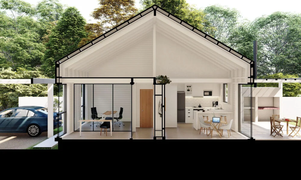 El tercer proyecto destacado de 3T Construcciones es la Casa al Sol, una vivienda que reinterpreta uno de los modelos del Plan Procrear con un enfoque innovador y sostenible. Elevada del suelo y construida en madera, esta casa se implanta en la parte trasera de la parcela para aprovechar al máximo la luz solar y el contacto con la naturaleza. Con un diseño que prioriza la integración de espacios interiores y exteriores, esta casa ofrece un ambiente confortable y acogedor para sus habitantes, demostrando una vez más la versatilidad y el potencial de la construcción con madera.