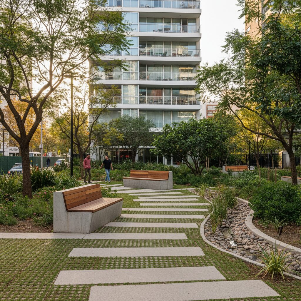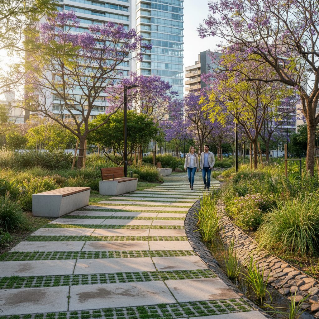 La planificación y ejecución de estos proyectos demanda una ingeniería multidisciplinaria rigurosa, donde la agronomía del paisaje se fusiona con la ingeniería civil y la hidráulica urbana. Proyectos actuales, como el ‘Corredor Ecológico del Río Mapocho’ en Santiago de Chile o el ‘Parque Lineal del Río Medellín’ en Colombia, ejemplifican la complejidad técnica inherente. Se prioriza la selección de especies nativas adaptadas al clima y edafología local para minimizar el consumo hídrico y maximizar la resiliencia ecológica, junto con sistemas de riego eficientes –goteo, aspersión con sensores de humedad y sistemas de captación de agua de lluvia–. Asimismo, la implementación de pavimentos permeables, como adoquines porosos y grillas de contención de césped, es crucial para la gestión de aguas pluviales y la recarga de acuíferos urbanos. El análisis de ciclos de vida de los materiales es un componente fundamental, favoreciendo soluciones con bajo impacto ambiental en su producción y alta durabilidad operacional. La infraestructura subterránea, que a menudo acompaña estos corredores (servicios públicos, drenajes, canalizaciones), exige una coordinación rigurosa entre las diferentes empresas de servicios para evitar interferencias y asegurar la funcionalidad a largo plazo de la obra pública en su conjunto.
